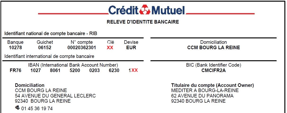 Chers méditant.e.s, vous pouvez régler par virement l'adhésion annuelle, ou un crédit pour les séances
